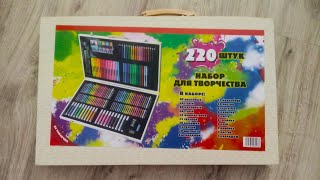 Набор для творчества в чемодане 220 предметов – отличный подарок на любой праздник как для мальчика, так и для девочки, который разовьет талант юного художника. Плюсы товара: все предметы собраны в компактном деревянном чемодане; каждый предмет имеет собственное место и прочно крепится на него; в набор входят разнообразные предметы для творчества: восковые мелки, масляная пастель, фломастеры, маркеры, карандаши, краски, бумага, ластик, точилка, клей, кисти и многое другое, необходимое для полета фантазии; все предметы качественные и безопасные; углы чемодана оптимально закруглены, что обезопасит ребенка от ранений; благодаря надежной защелке чемодан не откроется без необходимости. Огромный кейс со всей необходимой атрибутикой для творчества позволит Вашему ребенку развить чувство прекрасного, улучшит мелкую моторику, внимательность и усидчивость.